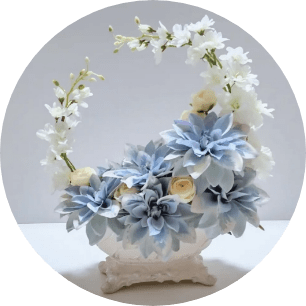 空調を中心とした設備工事の確かな技術と、アーティフィシャルフラワーやアロマによる空間演出を融合。